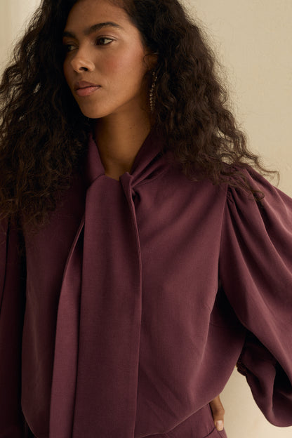 Nowe odszycie koszuli Nonna to esencja jesiennej elegancji. Wykonana z mięsistej, przyjemnej w dotyku tkaniny, pięknie układa się na sylwetce, podkreślając jej naturalną lekkość. Charakterystyczny fontaź przy szyi możesz stylizować na wiele sposobów - zawiązać w efektowną kokardę, puścić luźno, przewiązać w supełek lub zarzucić zmysłowo na plecy, w zależności od nastroju i okazji.