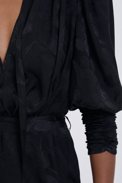 Nowa odsłona Palomy zachwyca szlachetną, czarną żakardową tkaniną, na której subtelnie wyłaniają się liściaste motywy - niczym rysunek światła na nocnym tle. Ten wyjątkowy materiał dodaje głębi i luksusowego charakteru, sprawiając, że każdy ruch nabiera wyjątkowej lekkości.